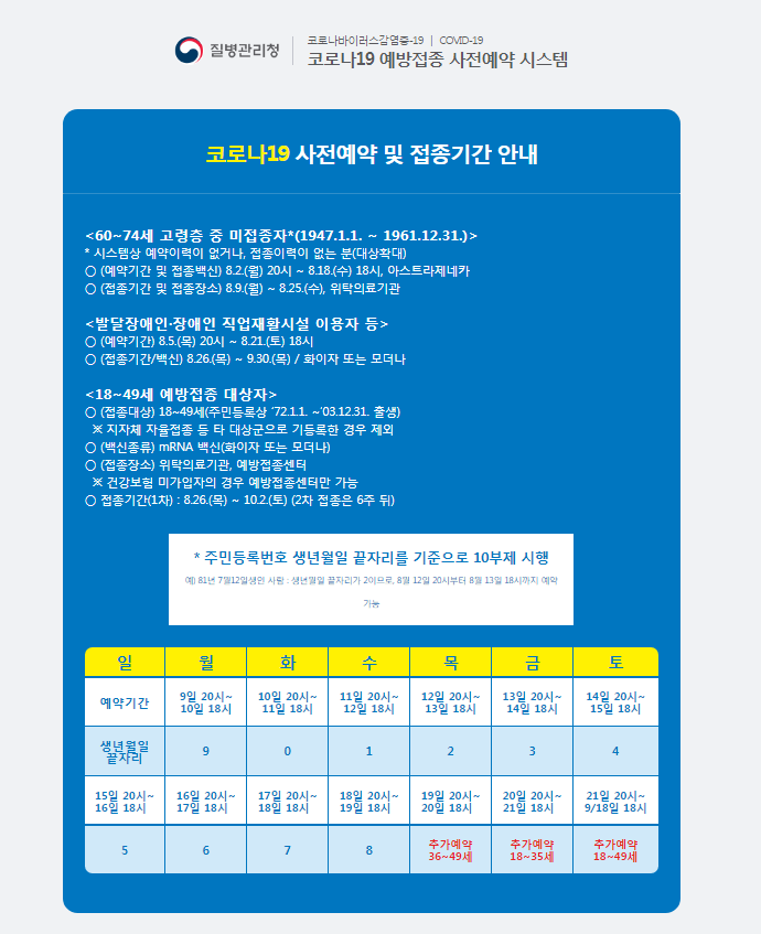 백신 사전예약 시스템 - 18~49세 백신 접종 예약 8월 시작!! - 우선 백신 사전예약 시스템(ncvr.kdca.go.kr)에 본인 인증이 완료된 기기 1대 외에는 접속이 차단된다.. 정경심 이번주 2심 선고…조민 세미나 참석 증언 변수? 우선 백신 사전예약 시스템(ncvr.kdca.go.kr)에 본인 인증이 완료된 기기 1대 외에는 접속이 차단된다. 특수 던전 시간 증가 이벤트. 우선 백신 사전예약 시스템(ncvr.kdca.go.kr)에 본인 인증이 완료된 기기 1대 외에는 접속이 차단된다. 신규 서버 오픈과 새로운 시스템 추가.